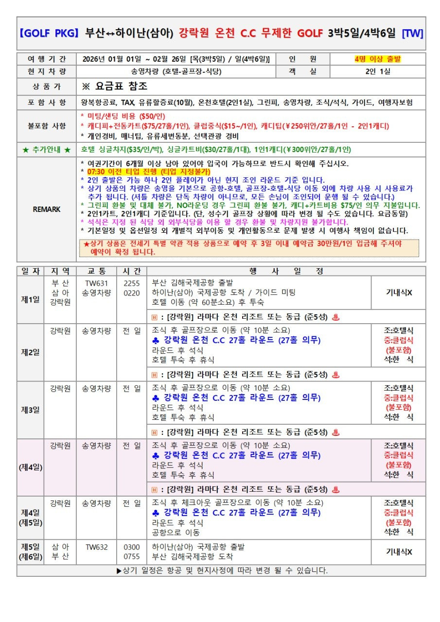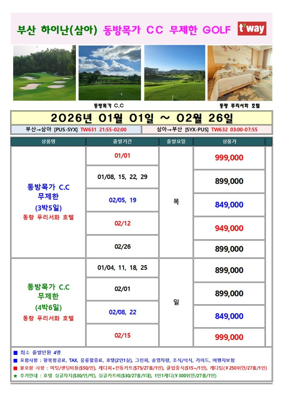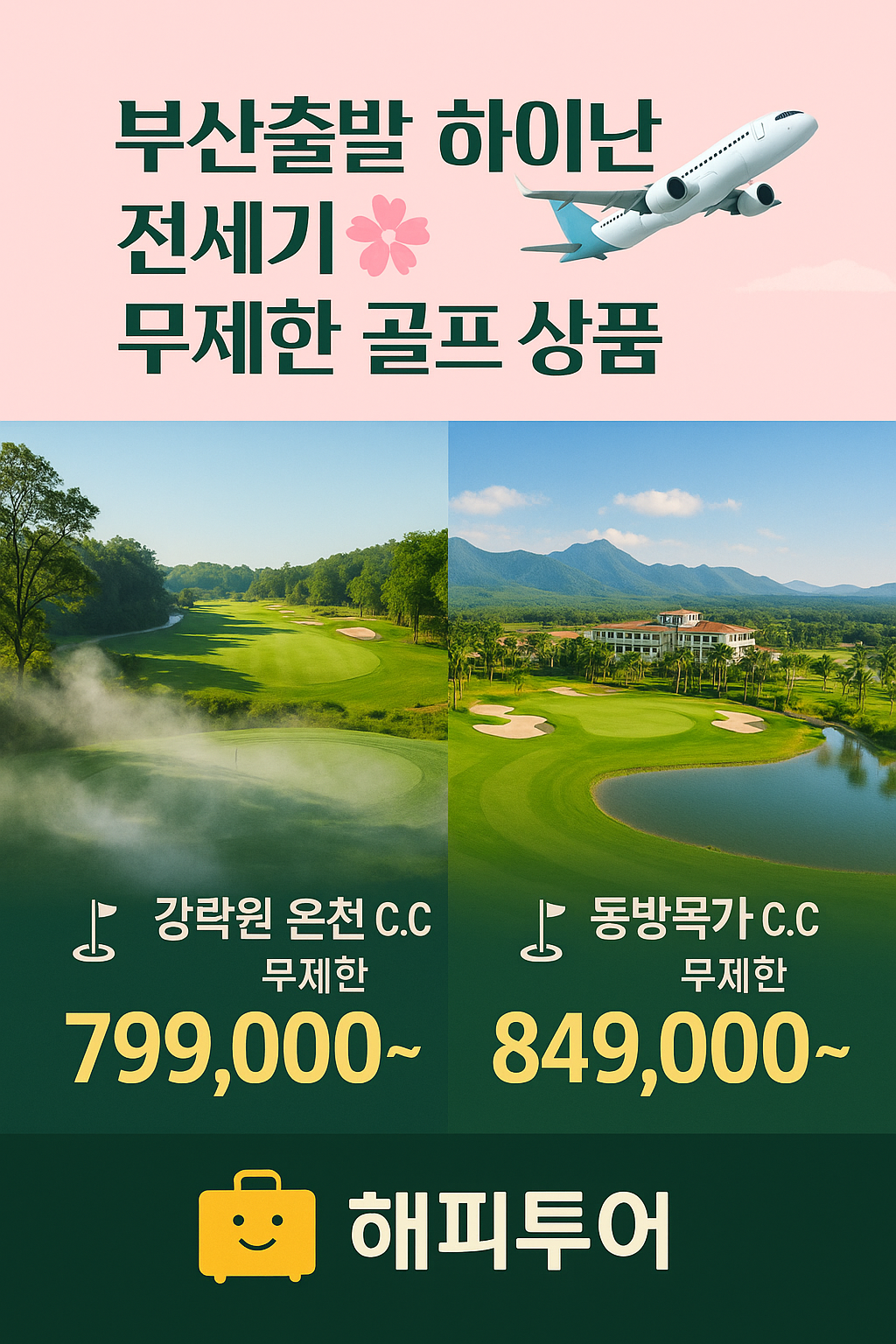 #부산출발하이난 #티웨이전세기 #하이난골프 #무제한골프 #강락원온천CC #동방목가CC #79만원특가 #4명출발확정 #겨울골프 #라마다리조트 #골프패키지 #부산티웨이 #여행핫딜 #데포짓필수 #파워블로그추천 #핵이득골프 #베트남여행 #해외골프 #골프천국 #1월2월여행#부산출발해외골프추천 #부산출발해외골프 #부산직항해외골프#해피투어 #특가해외골프#땡처리해외골프 #해피투어