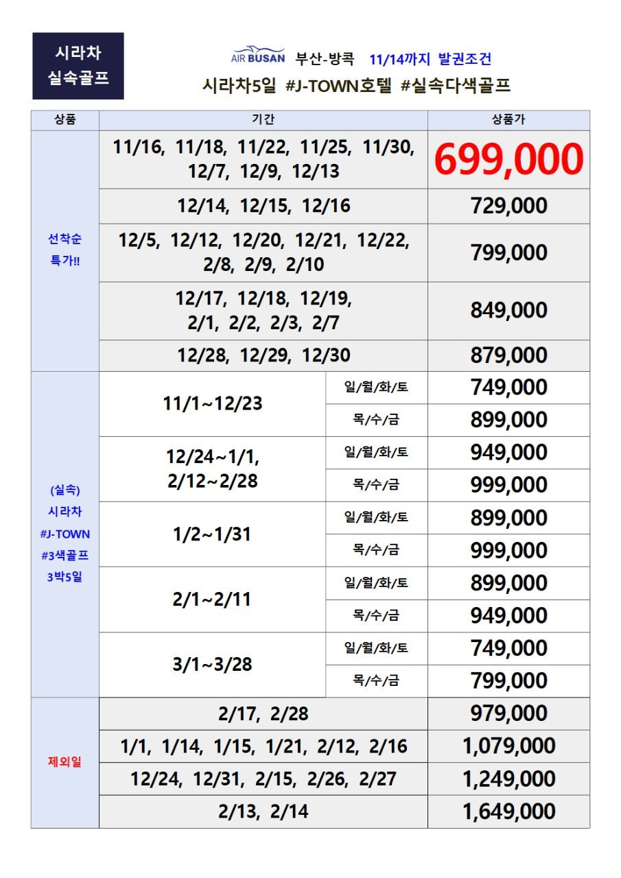 《부산출발해외골프♥방콕골프여행》시라차 J-TOWN 699,000원! 스위트룸 & 세탁 서비스 포함 조건 심층 분석 (11/14 마감)