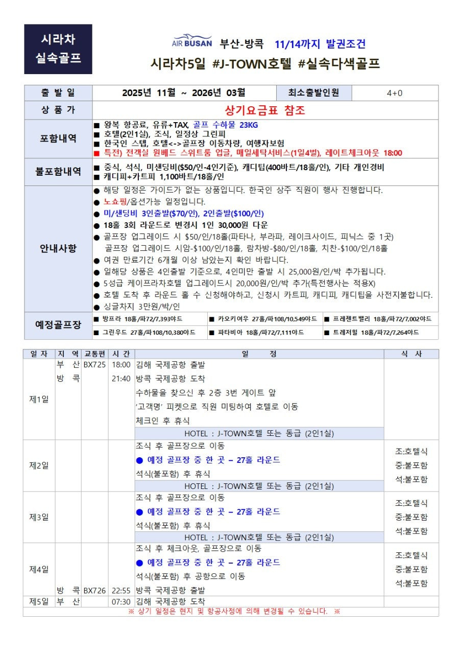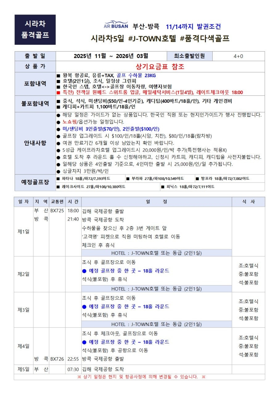 《부산출발해외골프♥방콕골프여행》시라차 J-TOWN 699,000원! 스위트룸 & 세탁 서비스 포함 조건 심층 분석 (11/14 마감) 본문