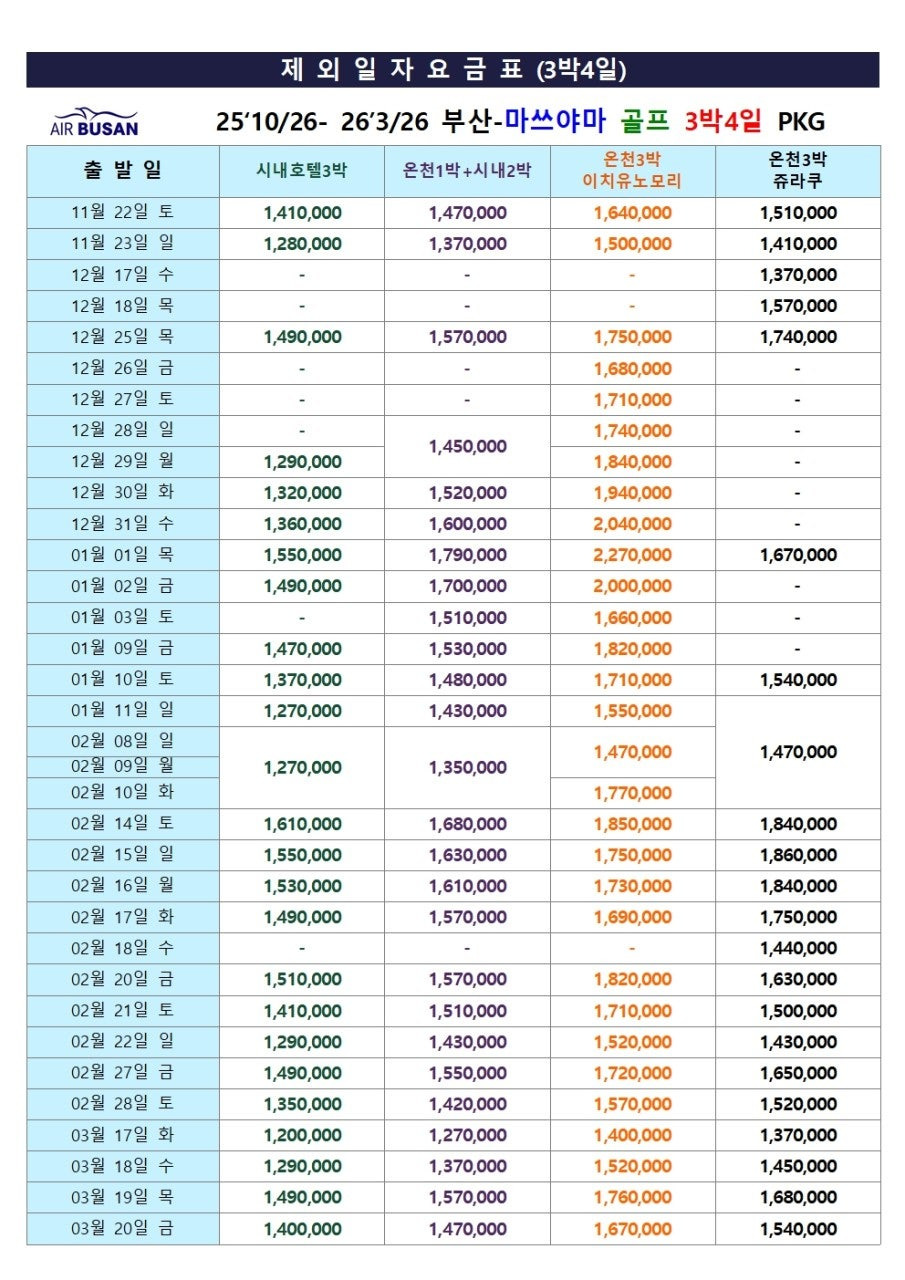🗣️ [2025년 1월 출발, '골프여신' 이O영 님, 마쓰야마 후기] "79만원대에 PGM 명문 코스 라운딩과 온천호텔 숙박이라니 정말 최고의 가성비였습니다. 에어부산 직항이라 편했고, 2인 출발이 가능해서 친구와 오붓하게 다녀왔어요. 오쿠도고 온천에서 피로가 싹 풀려 다음 날 라운딩 컨디션이 최고였습니다. 겨울 골프는 무조건 마쓰야마입니다!"