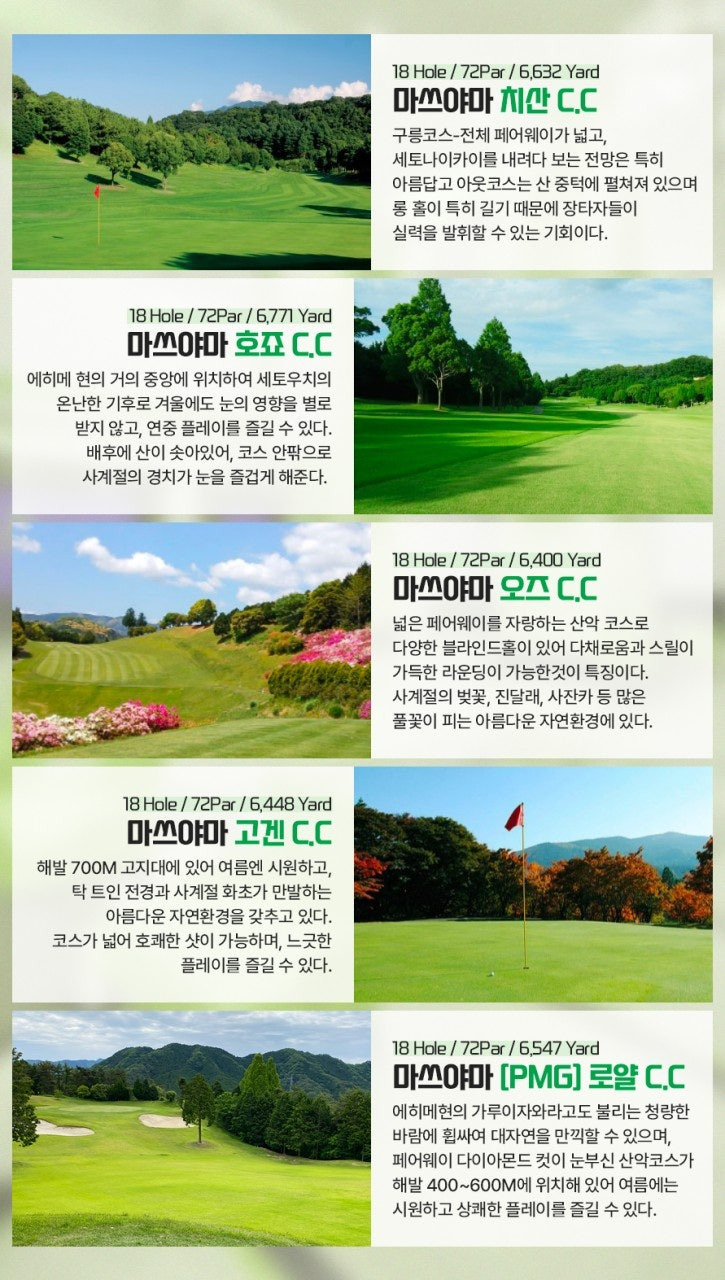 해피투어 2025. 11. 7. 05:43마쓰야마는 일본 소도시 골프 여행의 정점입니다. 10월 말부터 3월까지 이어지는 동계 시즌에도 한국의 가을/초겨울과 비슷한 쾌적한 기온에서 라운딩이 가능합니다.
