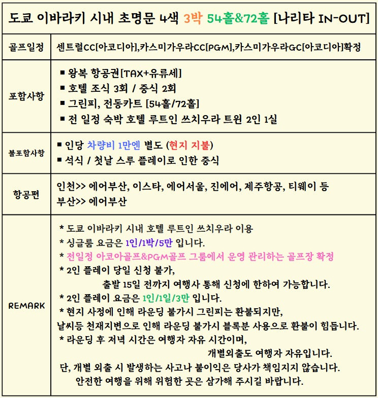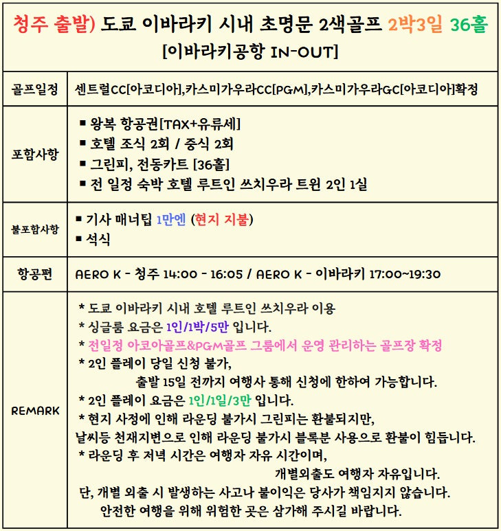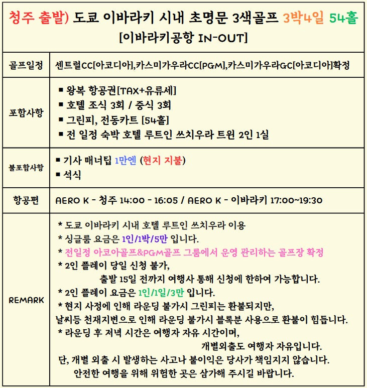 - #추석연휴골프 #청주출발골프 #인천출발골프 #이바라키골프 #일본골프투어 #록힐CC #마나CC #온천리조트골프 #일본프로테스트코스 #가성비골프여행 #2색골프투어 #해피투어 #이지숙실장
