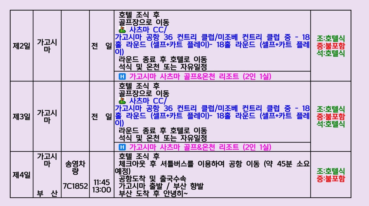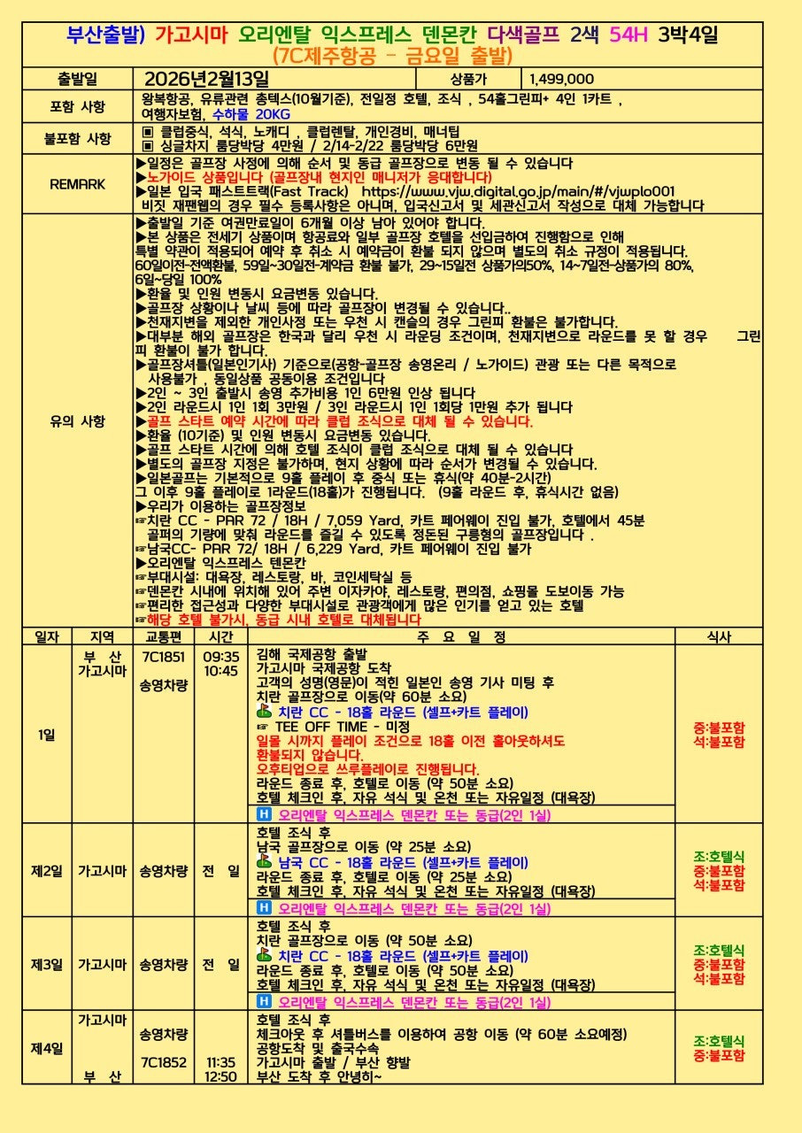 🏌 부산출발 – 가고시마 3박4일 골프패키지