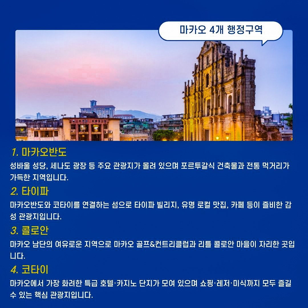 ❗ 불포함: 조/중/석식 (마카오는 미식의 도시! 미슐랭부터 현지 맛집까지 자유롭게 즐기세요!), 기본 노캐디 라운드