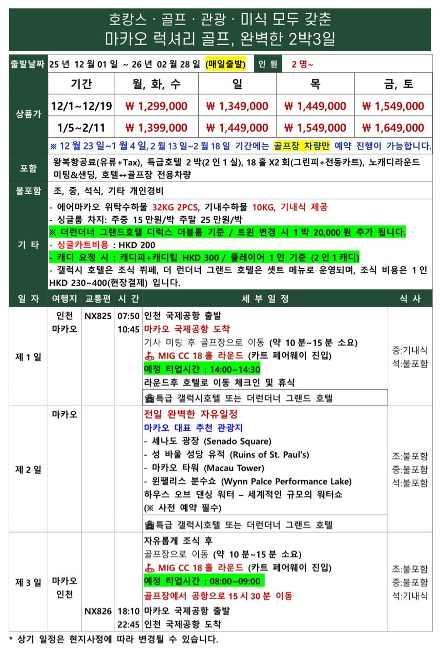 #마카오골프 #마카오여행 #갤럭시호텔 #더런더너호텔 #인천출발마카오 #2인출발골프 #해외럭셔리골프 #동계골프여행 #MIG골프클럽 #마카오호캉스 #마카오야경 #커플골프여행 #에어마카오 #마카오미식여행 #페어웨이카트 #프라이빗라운드 #마카오관광 #마카오골프특가 #해피투어골프 #겨울해외골프