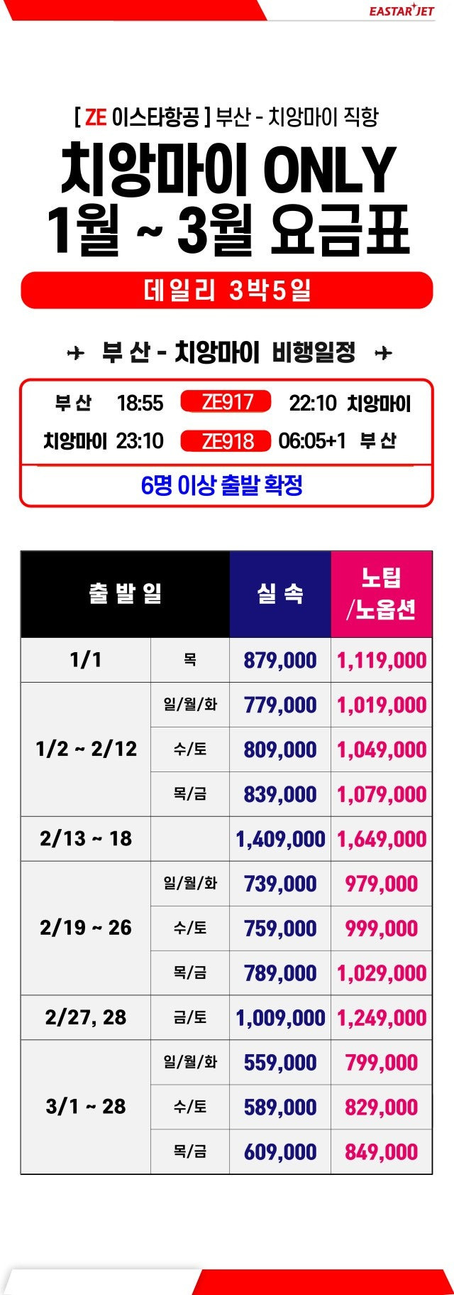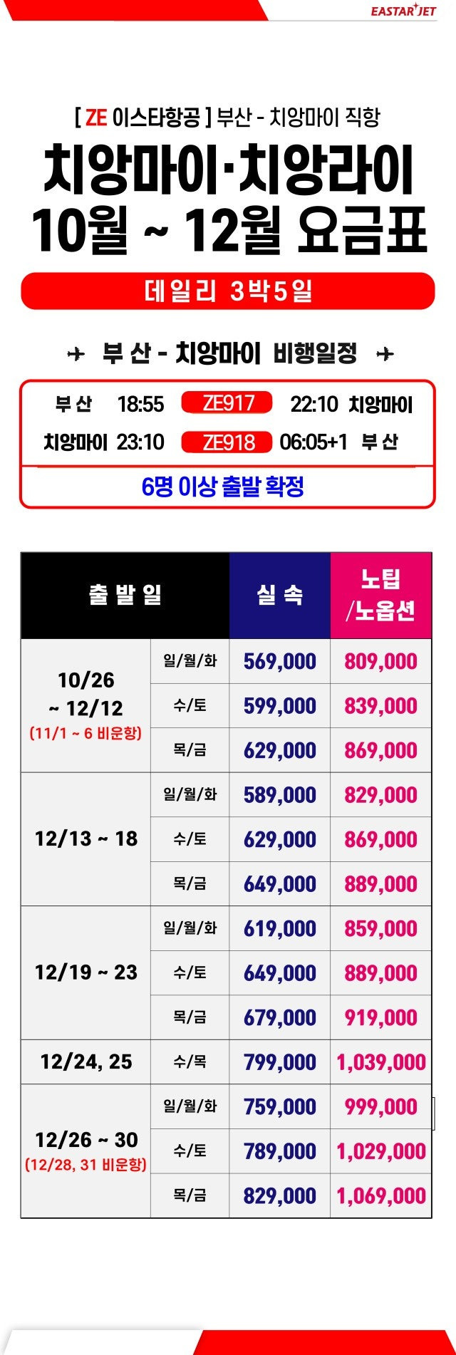 ✈ ZE918 치앙마이 23:00 → 부산 06:05+1