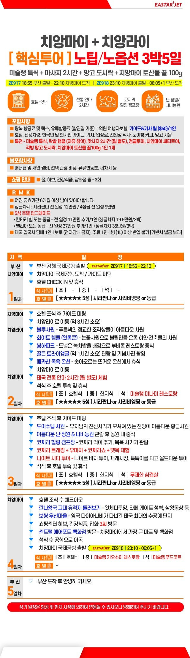 [부산출발 동계 치앙마이 데일리] 11월~3월 매일 출발, 핵심투어/핫플레이스 선택