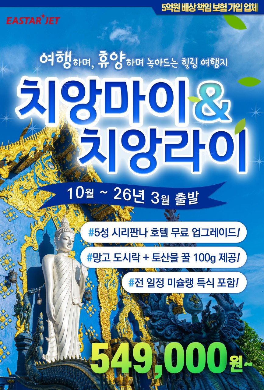- 치앙마이+라이 핵심투어 실속팩 549,000원~ / 노팁·노옵션 789,000원~