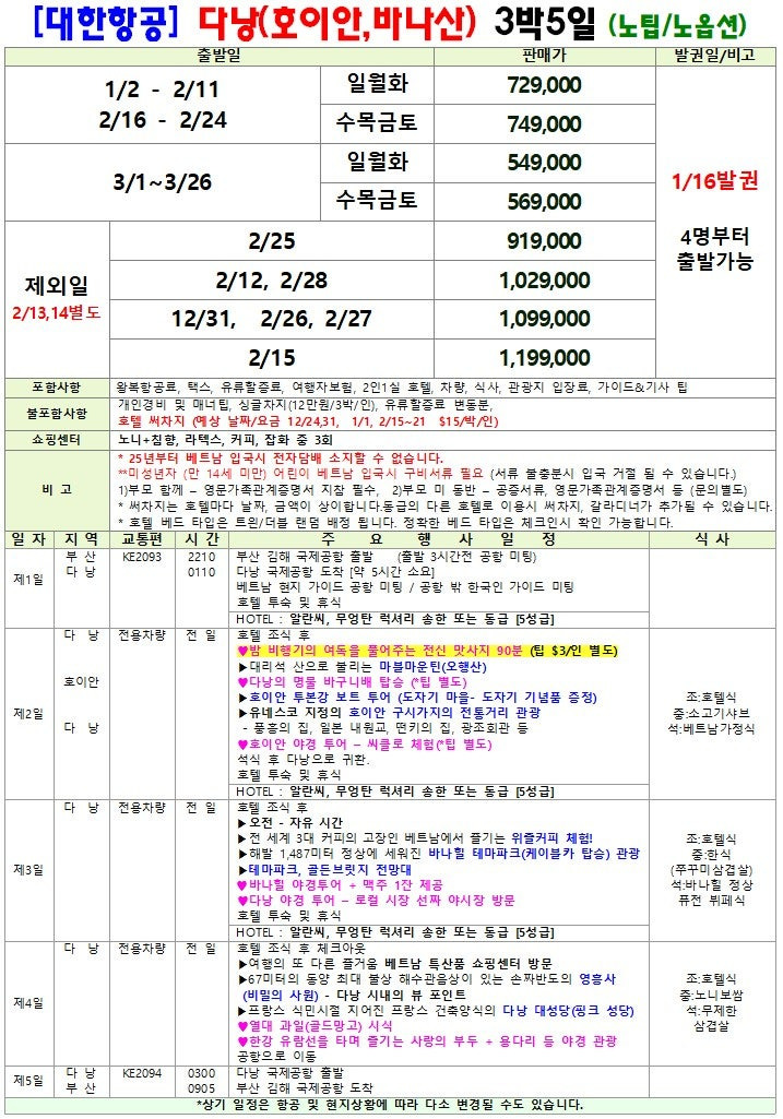 🚩베트남 - 다낭 3박5일 !! [✈대한항공&에어부산] 다낭(호이안, 바나산) 실속 &품격 ⚡에어부산 1/