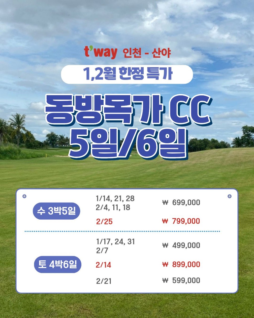 #인천출발골프 #하이난골프 #산야골프 #중국골프여행 #동방목가CC #매일27홀 #가성비골프 #40만원대해외여행 #해피투어 #겨울해외골프 #티웨이항공 #하이난특가 #골프패키지 #1월골프여행 #2월골프여행 #마지막특가 #골프부킹 #해외골프조인골프패키지#골프여행사#인천출발해외골프추천 #인천출발해외골프 #인천직항해외골프#해피투어