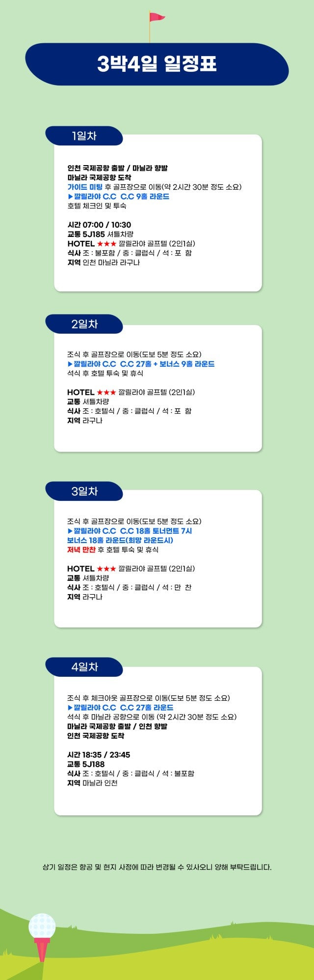 숙박: 깔릴라야 골프텔 3박 (2인 1실)
