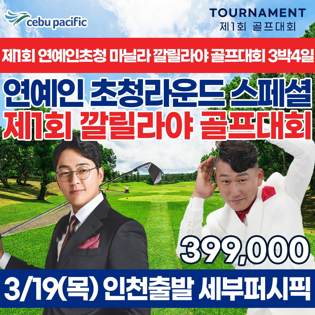 🏆 제1회 연예인 초청 ✨ 마닐라 깔릴라야 골프대회 3박4일 3/19(목) 인천 출발 / 세부퍼시픽 직항
