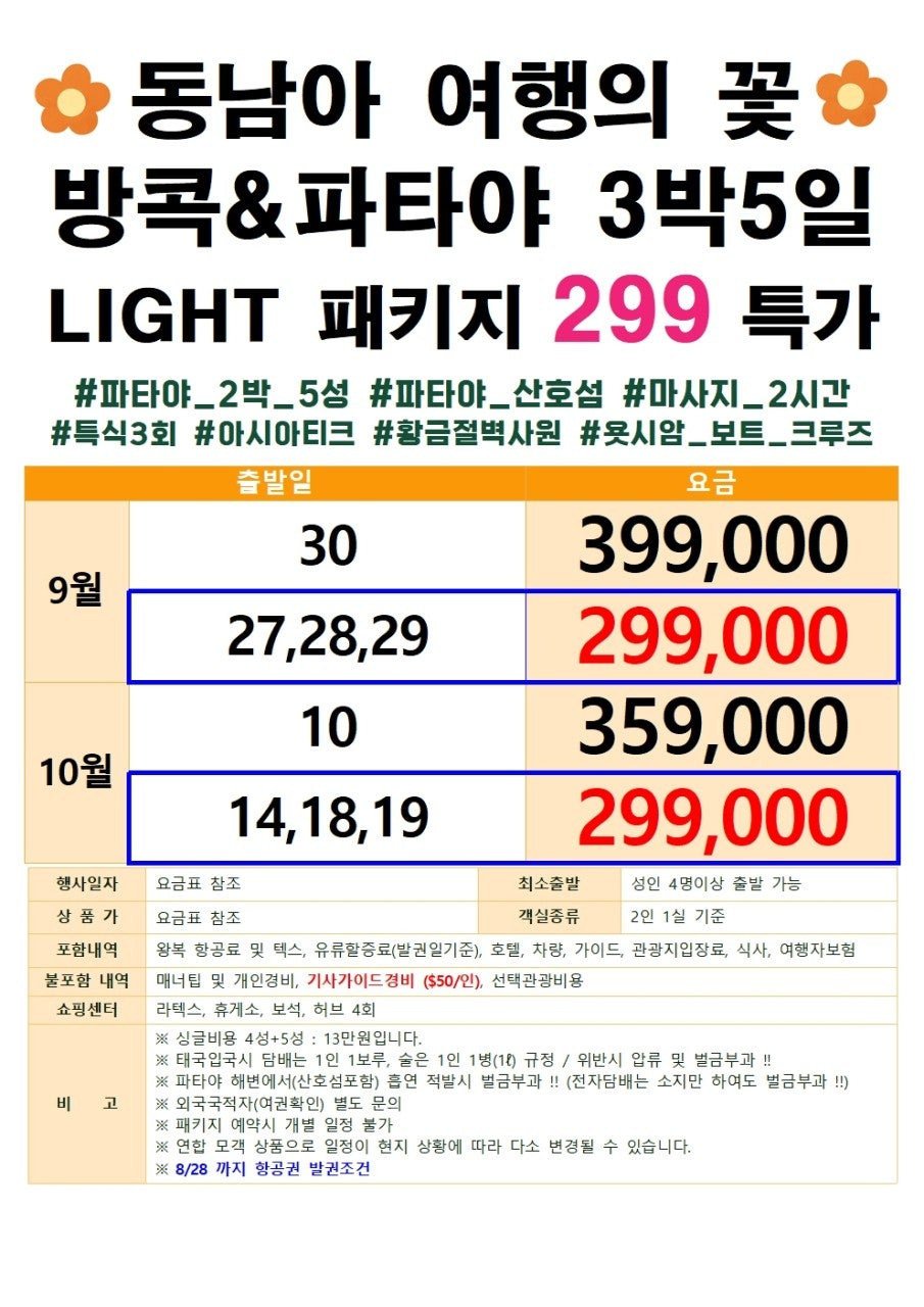 | 부산출발추석연휴해외여행[추석특가] 방콕&파타야 씨투 풀빌라 3박5일 – 1인 799,000원 (4) | 2025.08.12 |