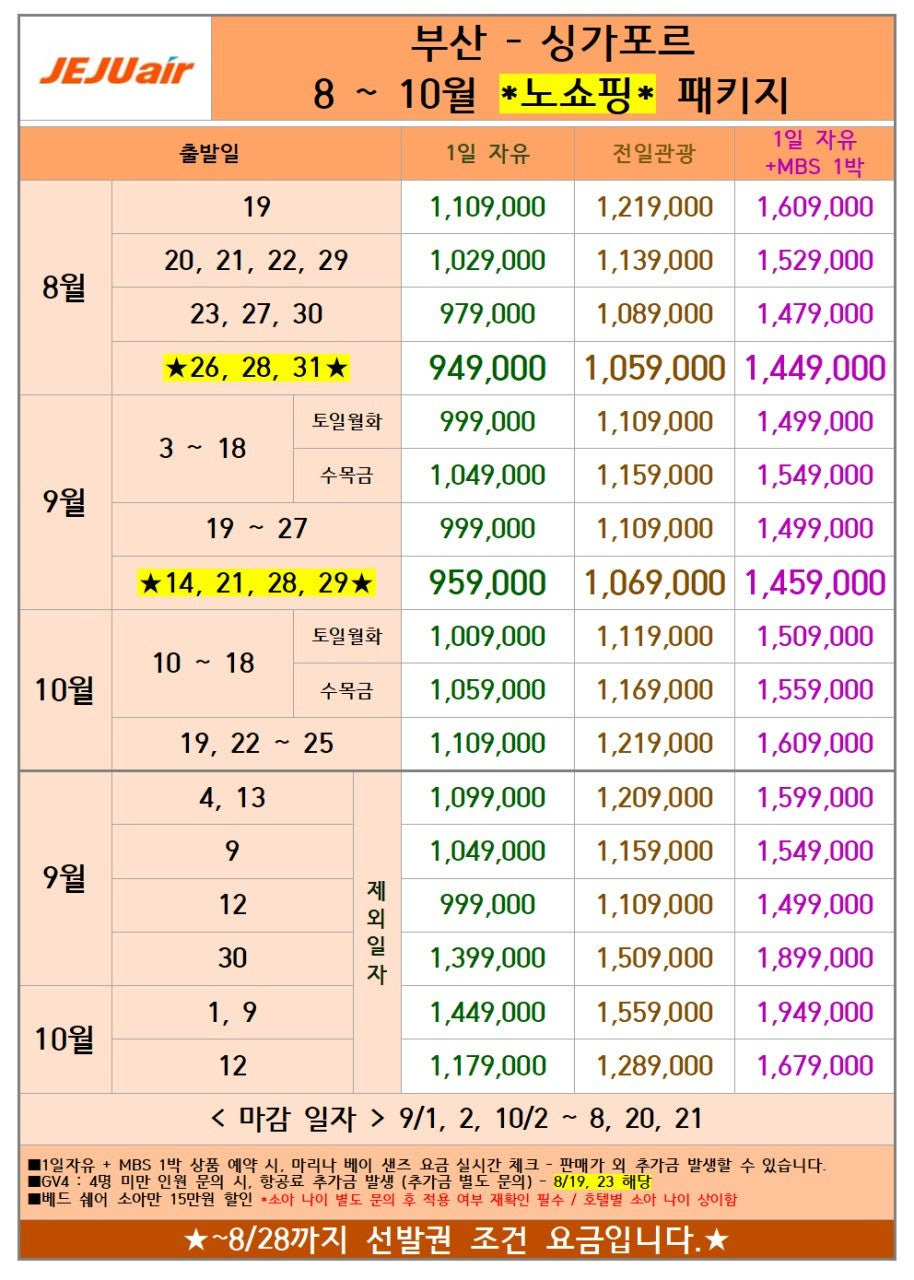 출발 확정일 : 9월 5, 8, 13, 15, 25