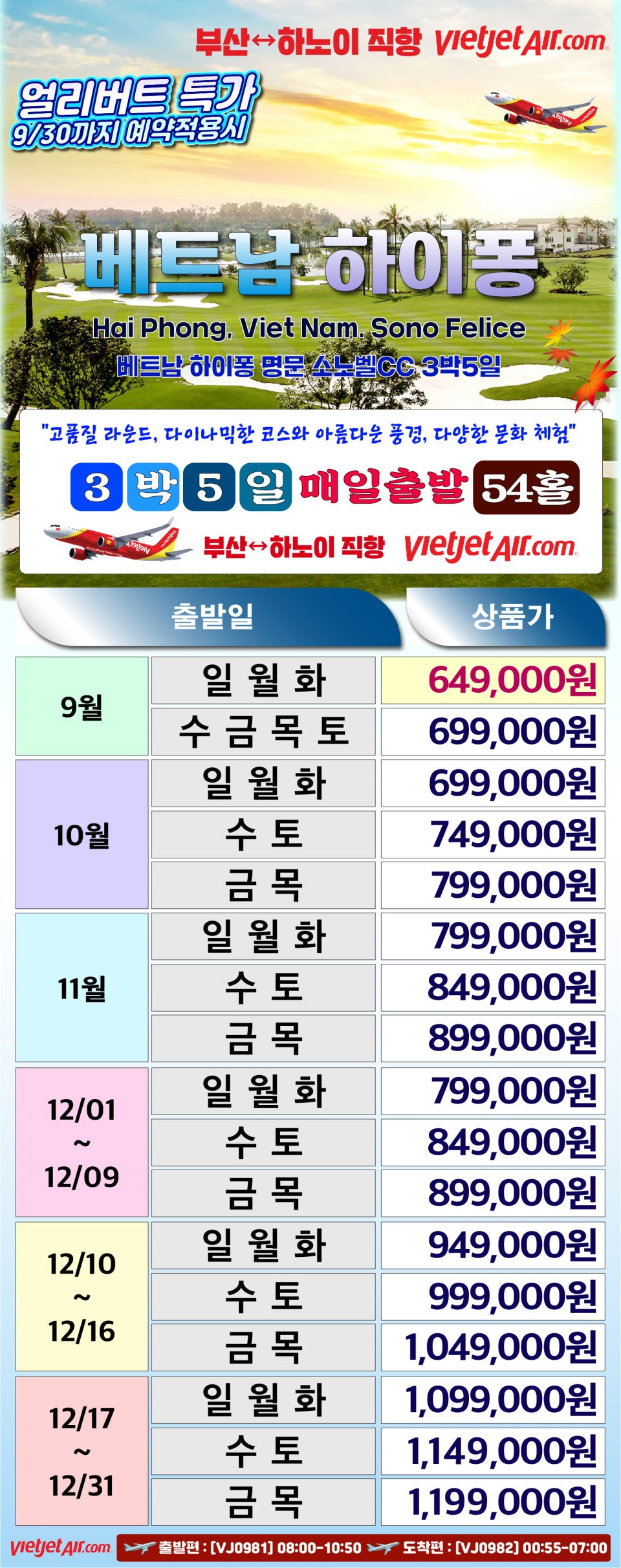 부산출발해외골프🌱베트남 하이퐁 소노펠리체 골프&리조트 – 3박5일 649,000원 특가 본문