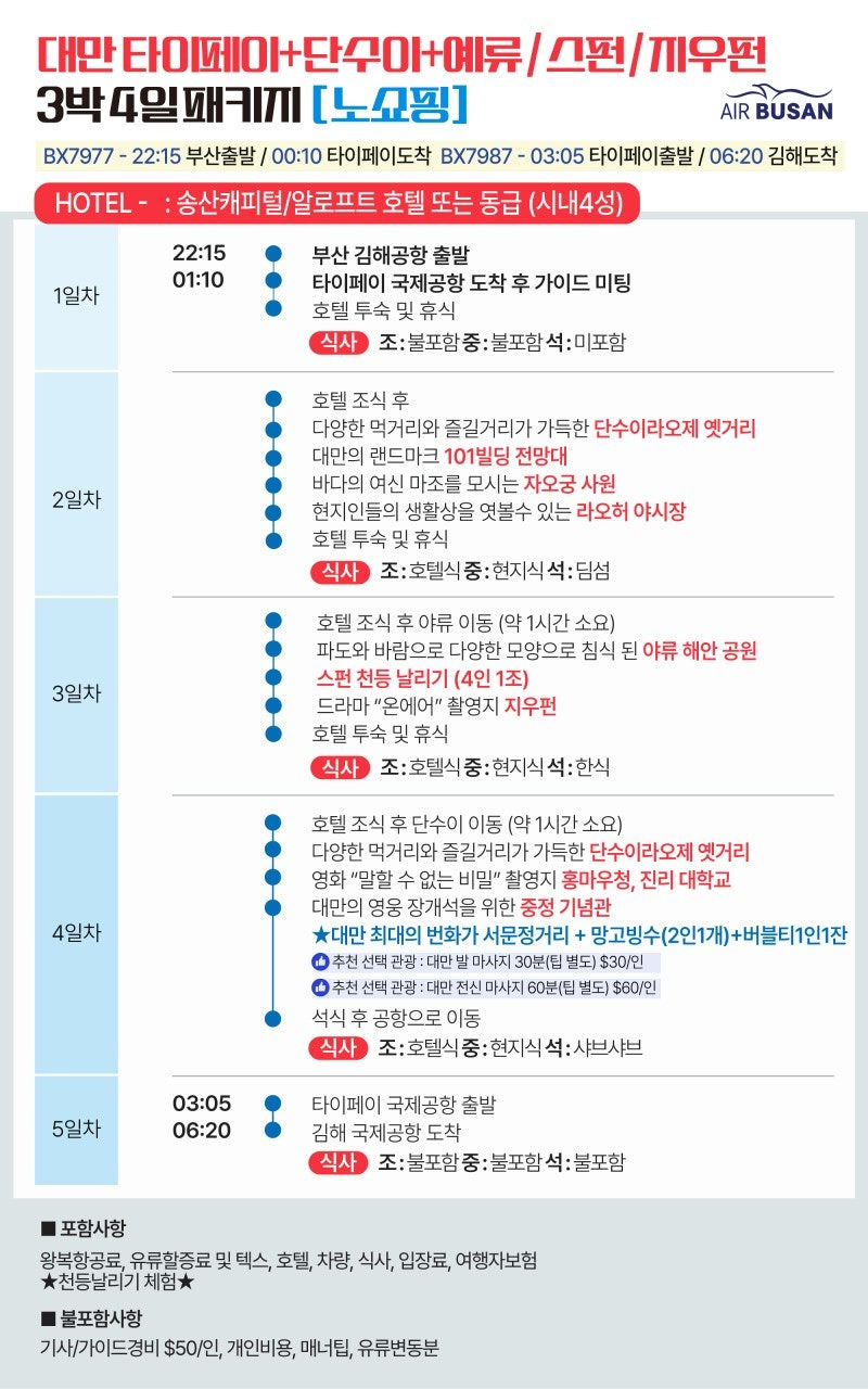 #추석연휴타이베이 #대만3박5일 #전세기출발확정 #타이베이노쇼핑패키지 #예스지단수이#부산출발추석연휴해외여행